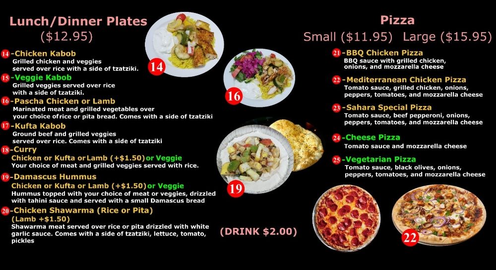 With options for vegans and vegetarians, as well as a welcoming space for families, Sahara On Main is ideal for takeout, delivery, or a casual dine-in experience. Join the buzz and indulge your palate at Sahara On Main!